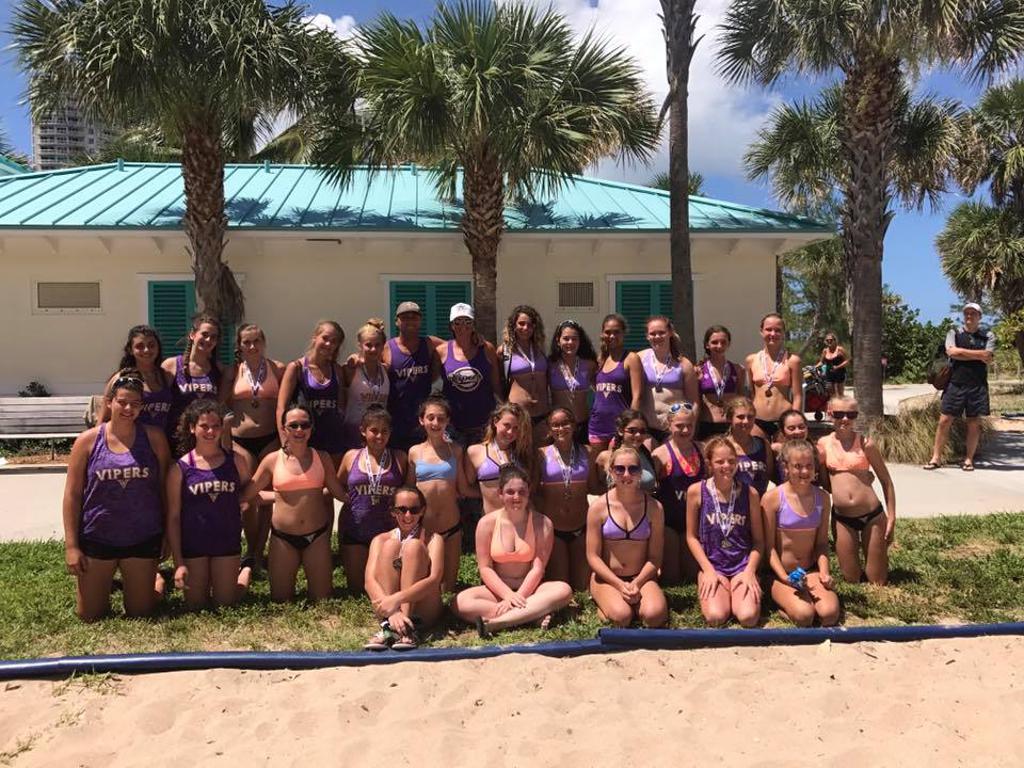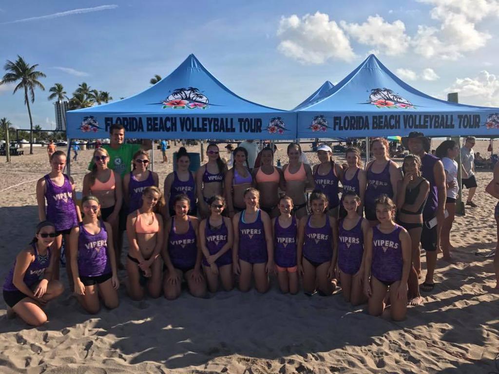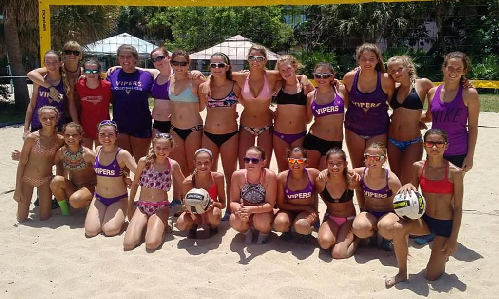 The Vipers Volleyball Club beach program begins in early September and runs through the end of August.